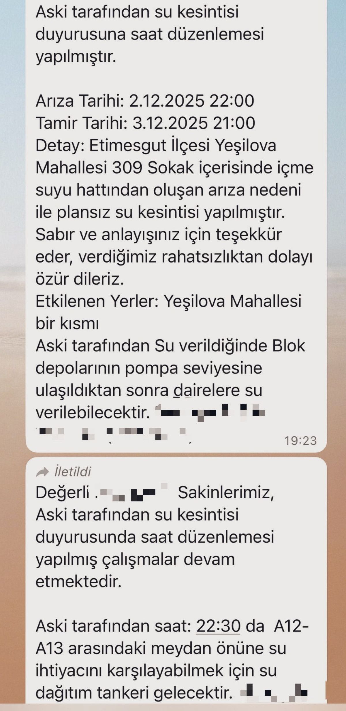 “Dün gece 1500–2 bin dairenin olduğu koca bir siteye tankerle su taşınan bir başkent… Yıl 2025 ama hizmet anlayışı hala 1990 modunda. Geçen gün “yol yok ama çekici var” demiştik… Şimdi de “şehre su yok ama tanker var.”